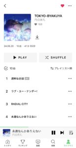 ②再生中に楽曲ページ内にある「+追加」ボタンを押し、「パラレルなハート」をご自身のライブラリに追加する(ボタンが緑色になる)